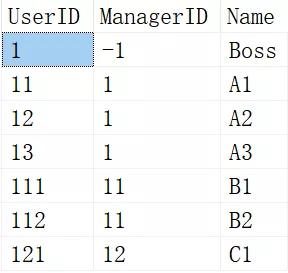 1、查询ManagerID=-1,作为根节点,这是递归查询的起始点。