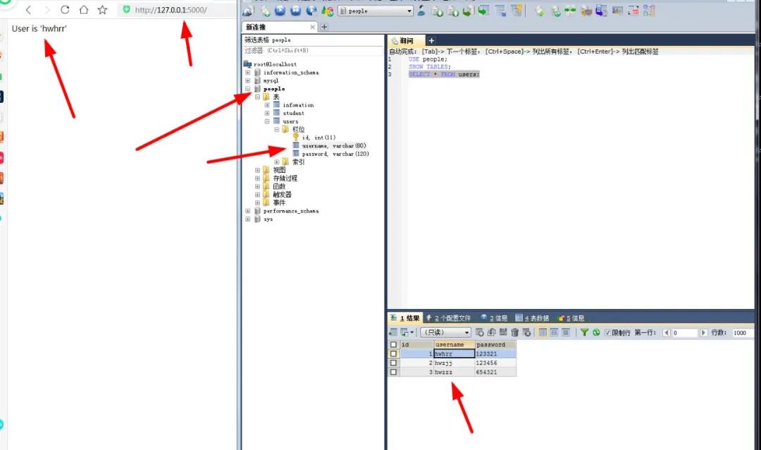 - app.config['SQLALCHEMY_DATABASE_URI']='mysql+pymysql://root:123456@127.0.0.1:3306/people'