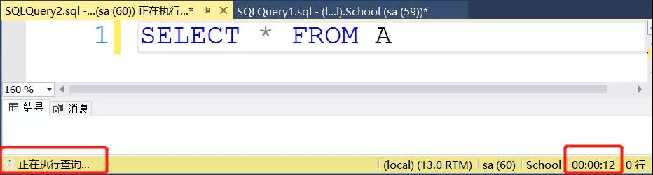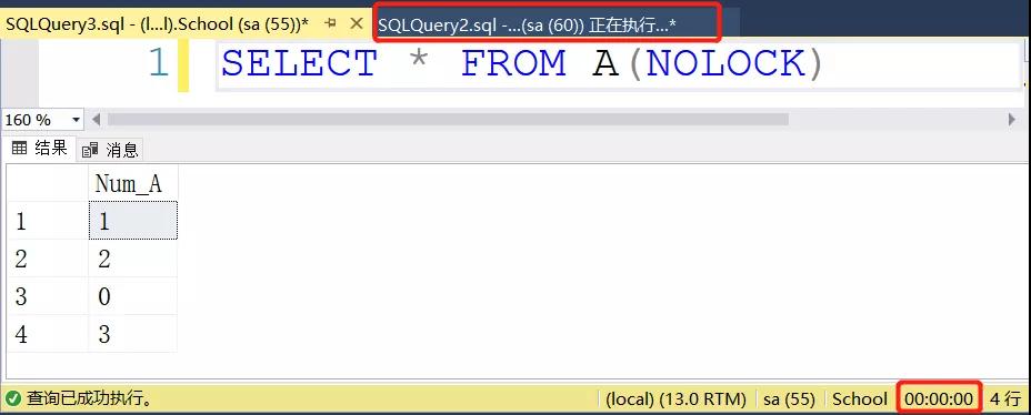 我们再新建一个查询窗口,还是查询A表,这次我们加上NOLOCK。