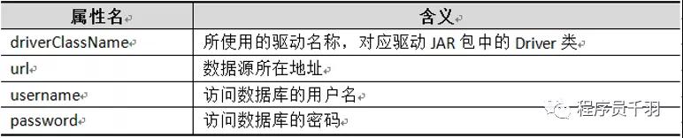 关于上述示例dataSource配置中的4个属性说明,如下表所示: