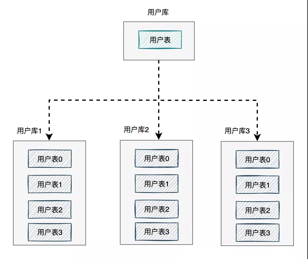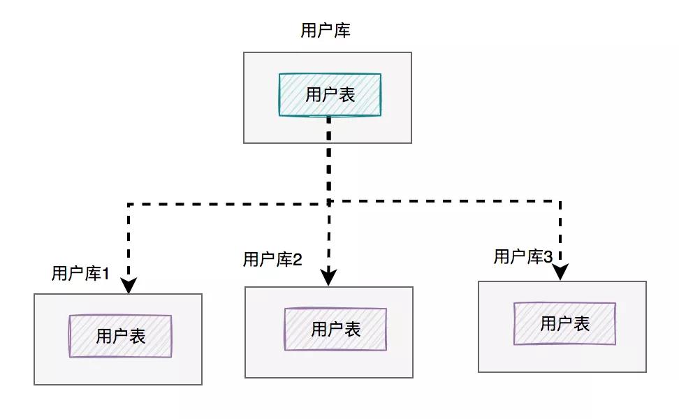 图中将用户库拆分成了三个库,每个库都包含了四张用户表。