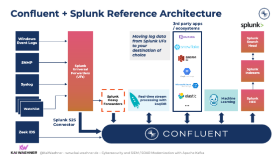 Confluent的Splunk S2S连接器就是一个很好的例子。假设企业已经拥有数百或数千个通用转发器(UF)和重型转发器(HF)。在这种情况下,这种方法允许用户经济高效且可靠地将数据从Splunk Forwarders读取到Kafka。它使用户能够将数据从通用转发器转发到Kafka主题中,以解锁数据的分析能力: