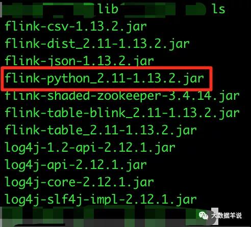 我们要把 lib 目录下的 flink-python_2.11-1.13.2.jar 复制到 opt 目录下