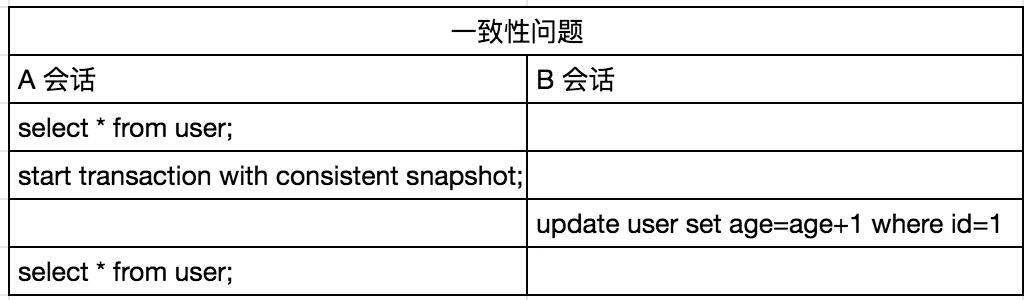 从这个角度来说,第一小节的案例似乎也没有问题,因为我们在 A 会话中执行 SELECT 语句多次,查到的结果也都是相同的,age 都是 102。