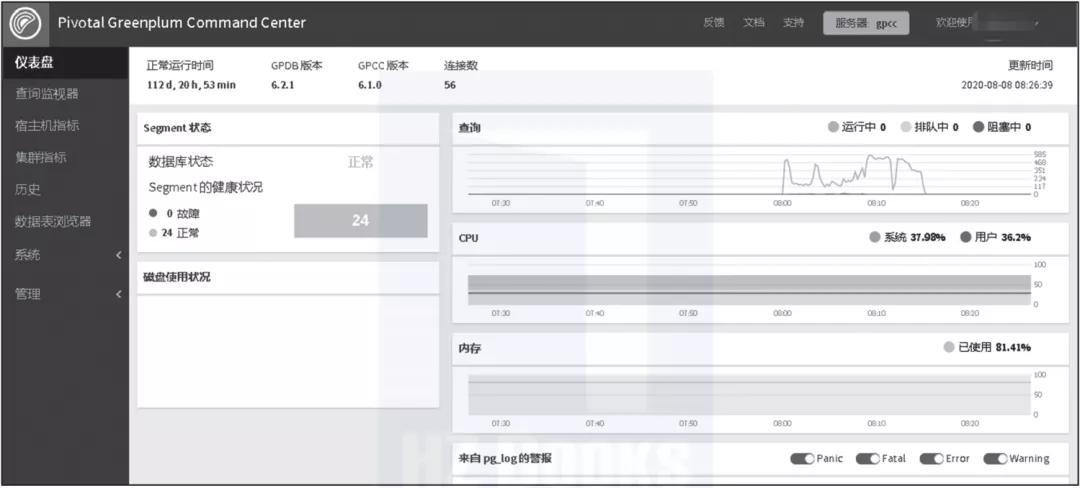 ▲图2-4 Greenplum数据库资源监控中心界面