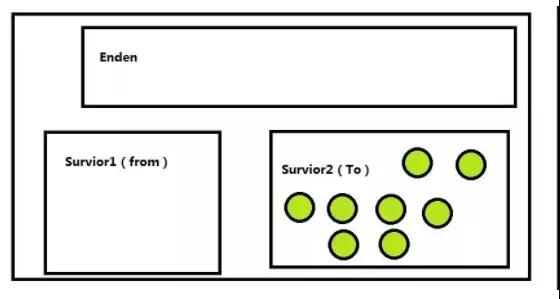 然后就来了把存活的对象复制放到Survior1(from)中,待回收的等待给他回收掉 就是这样的