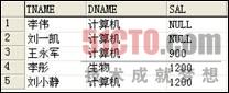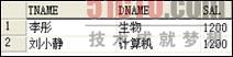 假如需要查询所有计算机系和生物系中,且工资收入(SAL)超过1000的教师的姓名(TNAME)、系(DNAME)、工资(SAL)信息。如果采用如下SQL代码: