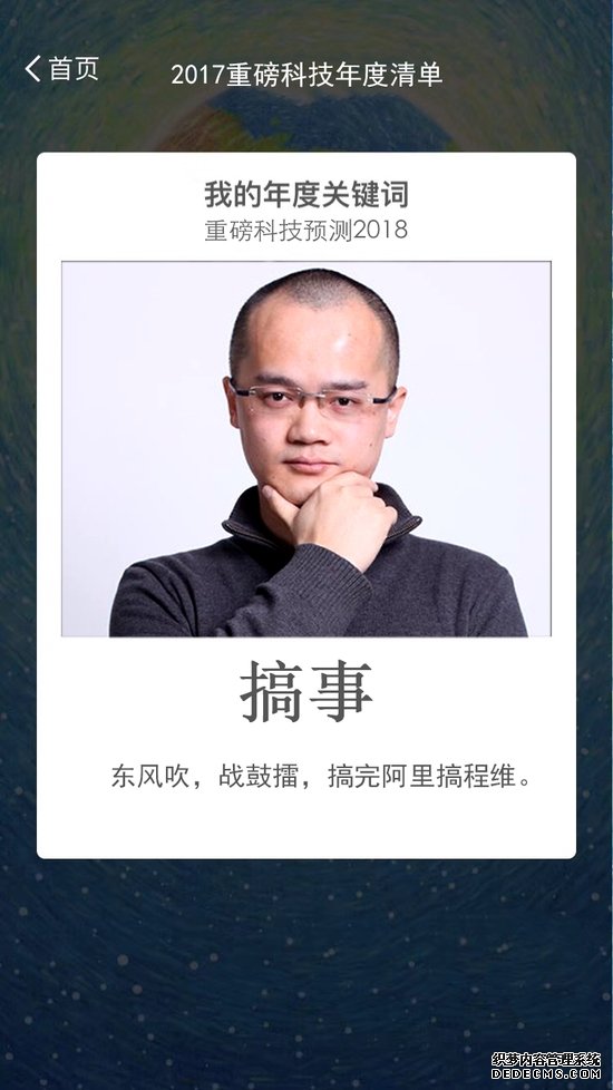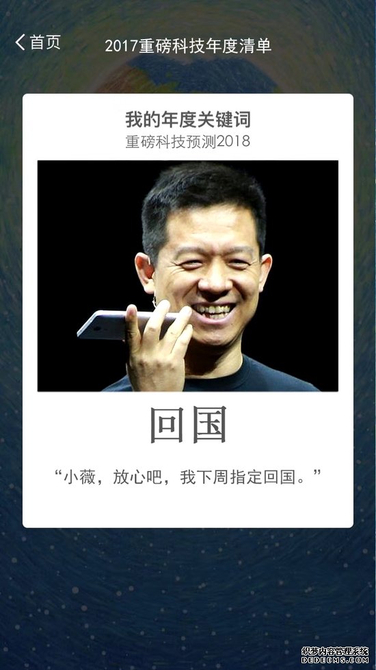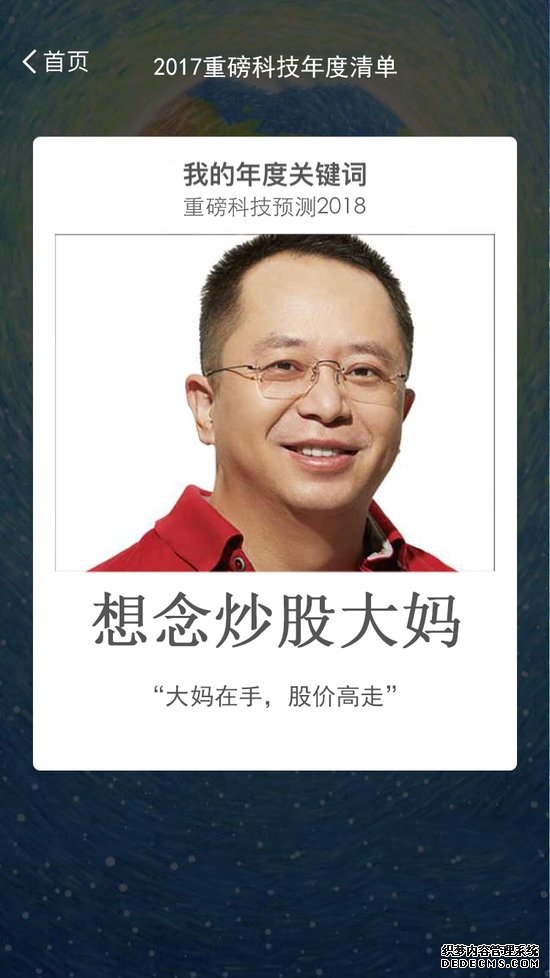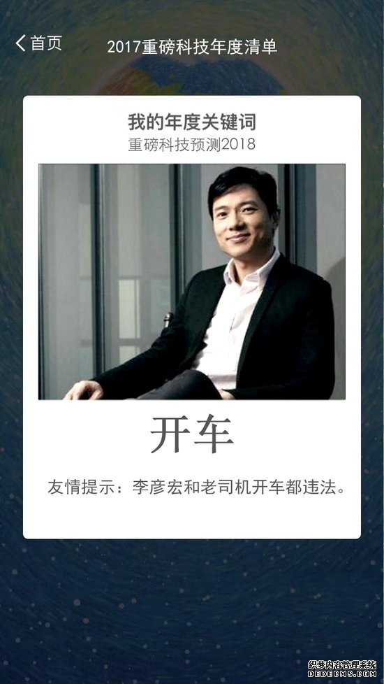 有网友迅速模仿,对各位IT大佬在2017年的表现进行了年度关键词账单总结,例如李彦宏的“开车”、马化腾的“吃鸡”,点评精确到位令人佩服,当然最经典还要属于乐视前CEO贾跃亭,“回国”这一个词也表达了各界人士的共同心声。