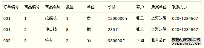 订单编号 客户编号 客户姓名 联系方式 001 1 张三 1234567 002 2 王麻子 1222222 003 3 李四 7654321