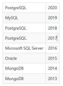 DB-Engines 2020 年度数据库:PostgreSQL,