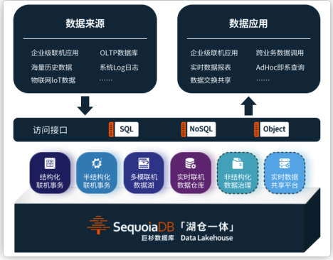 各个产品线均基于统一的SequoiaDB分布式数据库内核,可以按需独立部署,也可叠加使用。基于「湖仓一体」架构,降低数据流动带来的开发成本及计算存储开销,提升企业海量数据处理的“人效”和“能效”。