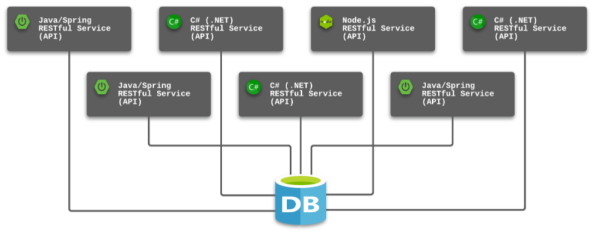 从效果上说,此类RESTful服务类型的API和前端Javascript框架模式的配合,激发了许多组织从单一(monolithic)或过时的应用程序,迁移到新项目中的愿望。当然,凡事都有利与弊,RESTful API在助推敏捷迭代式开发的同时,也带来了一个问题:在传统的应用设计中,我们虽然可以使用多个RESTful API和Javascript框架的组件化客户端,但是也使用着单一的数据库。这种设计的结果往往会导致数据所有权的冲突、高于预期的数据库连接数、以及对大型数据库过高的支持与维护成本。