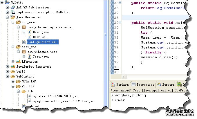 1.Configuration.xml 是 mybatis 用来建立 sessionFactory 用的,里面主要包含了数据库连接相关东西,还有 java 类所对应的别名,比如 <typeAlias alias="User" type="com.yihaomen.mybatis.model.User"/> 这个别名非常重要,你在 具体的类的映射中,比如User.xml 中 resultType 就是对应这里的。要保持一致,当然这里的 resultType 还有另外单独的定义方式,后面再说。