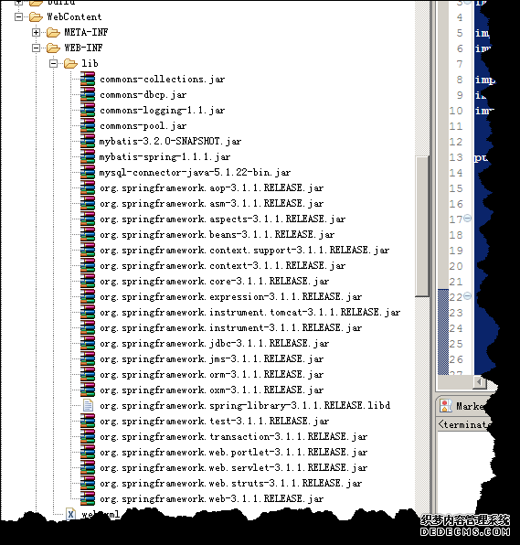 2. 将 mybatis-3.2.0-SNAPSHOT.jar,mysql-connector-java-5.1.22-bin.jar 拷贝到 web工程的lib目录.