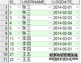 Sql代码- select USERNAME_ as 员工,wmsys.wm_concat(LOGDATE_) as 出勤记录 from T_ATTENDANCE_LOG t group by USERNAME_