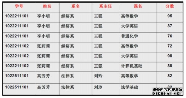 学生的姓名、系名与系主任,不再像之前一样重复那么多次了。——有改进 - 删除某个系中所有的学生记录