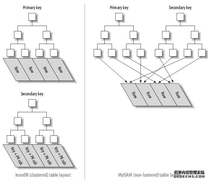 3.1.1、InnoDB和MyISAM的数据布局的比较