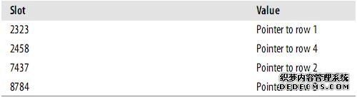 MySQL会计算’Peter’的hash值,然后通过它来查询索引的行指针。因为f('Peter') = 8784,MySQL会在索引中查找8784,得到指向记录3的指针。