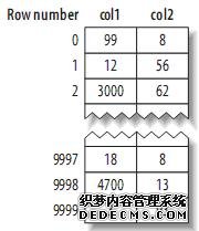 假设主键的值位于1---10,000之间,且按随机顺序插入,然后用OPTIMIZE TABLE进行优化。col2随机赋予1---100之间的值,所以会存在许多重复的值。