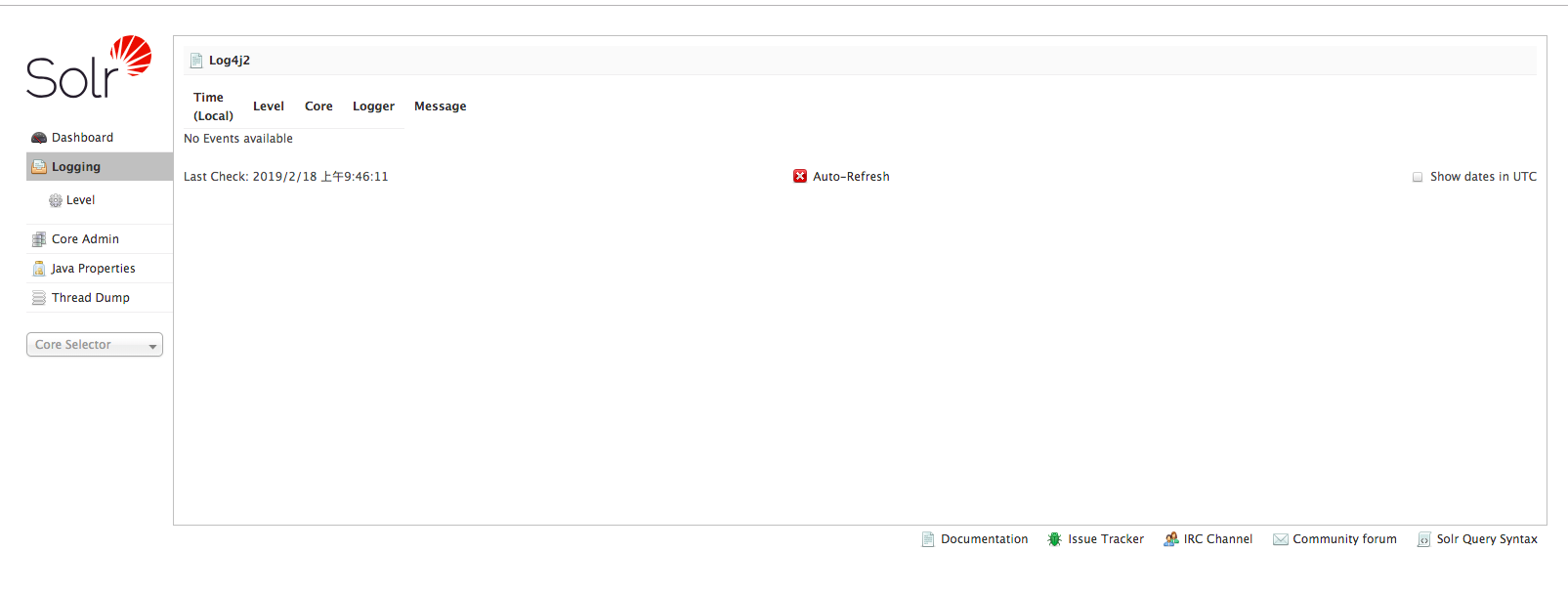 启动完毕之后,可以看到 。solr端口是 8983, 在浏览器输入 http://localhost:8983 可以看到,进入到solr的ui洁面中