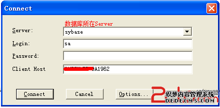 选择数据库所在的Server,输入用户名:sa,密码默认为空(当然,如果你修改过sa密码的话,就填修改后的),点击Connect。