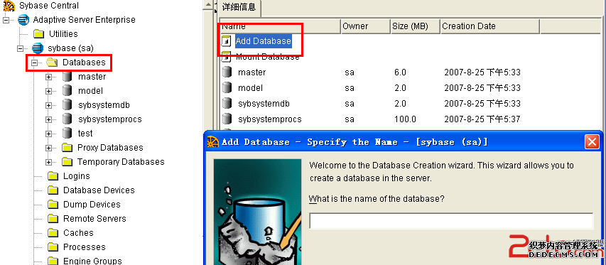 二、接下来就是创建数据库了,点击Databases,双击AddDatabase。