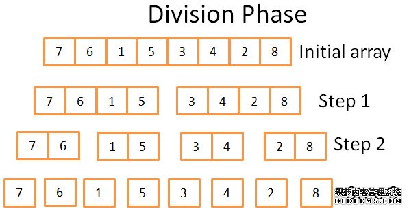 合并排序是把问题拆分为小问题,通过解决小问题来解决最初的问题(注:这种算法叫分治法,即『分而治之、各个击破』)。如果你不懂,不用担心,我第一次接触时也不懂。如果能帮助你理解的话,我认为这个算法是个两步算法: