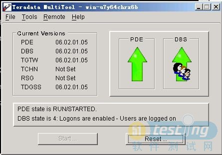 (1)Teradata安装好之后,最好安装一个Assitant,不过没有这个也没什么,纯手工SQL也能写。如果不是第一次使用环境,先开启Windows的服务,然后在开始菜单的Teradata的选项中选择“Teradata multiTool”选项,将两个后台服务PDE和DBS启动。具体启动界面如下: